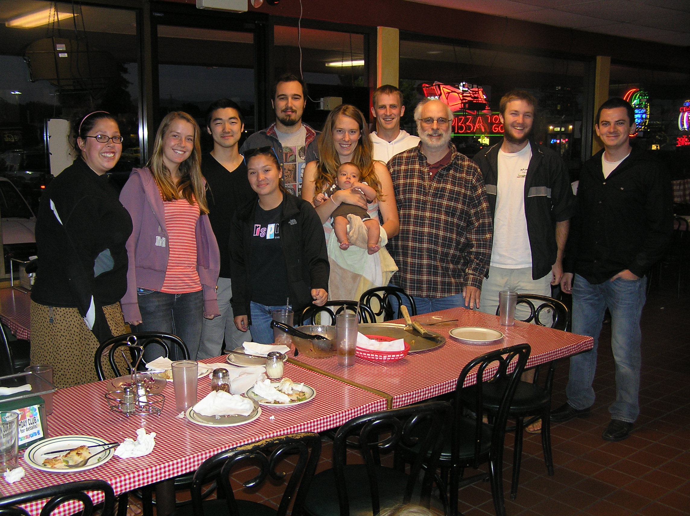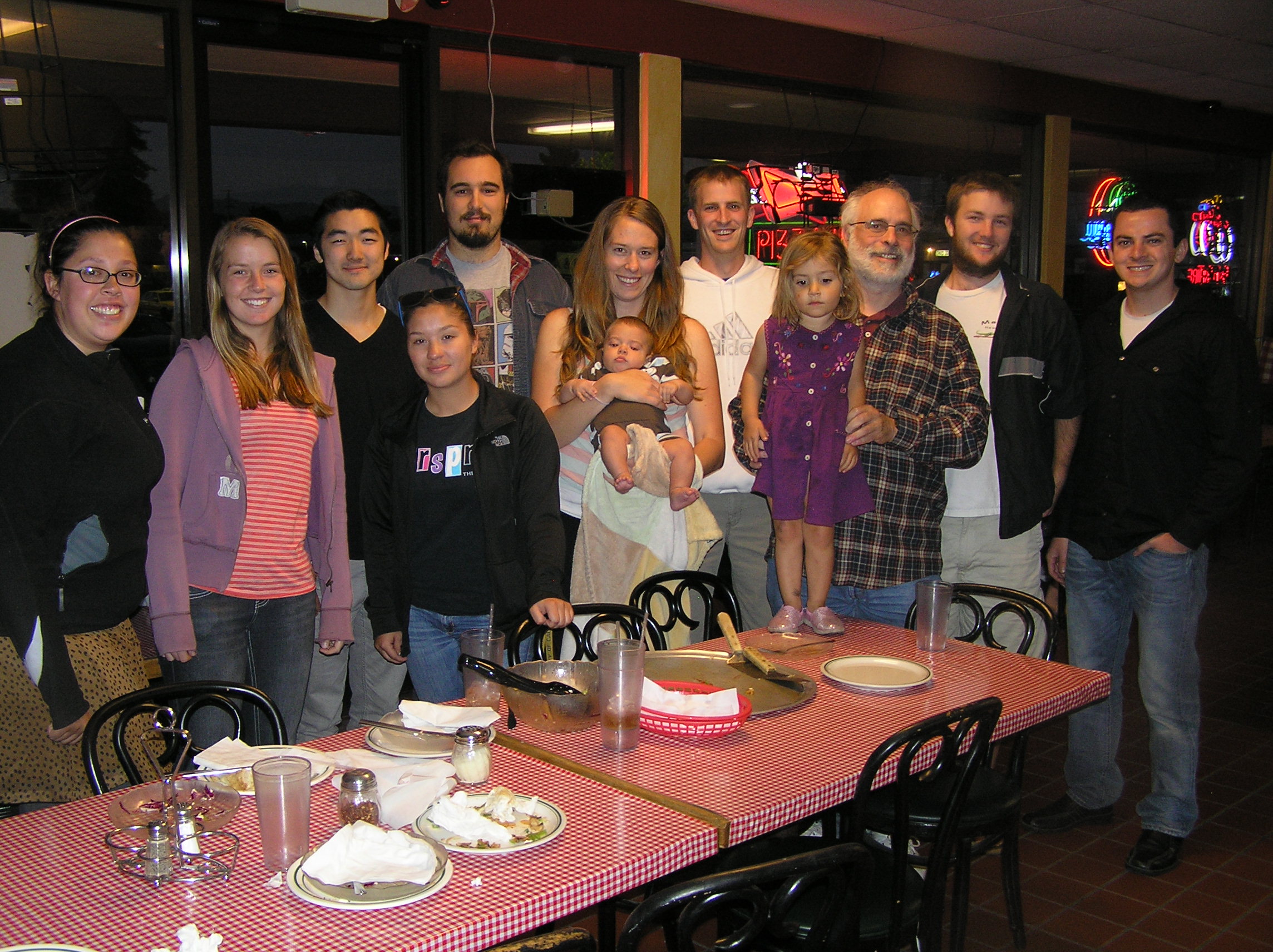 Laura, Pauline, Michael, Laurie, Yahoo, Clara (holding Noah), Andy,
